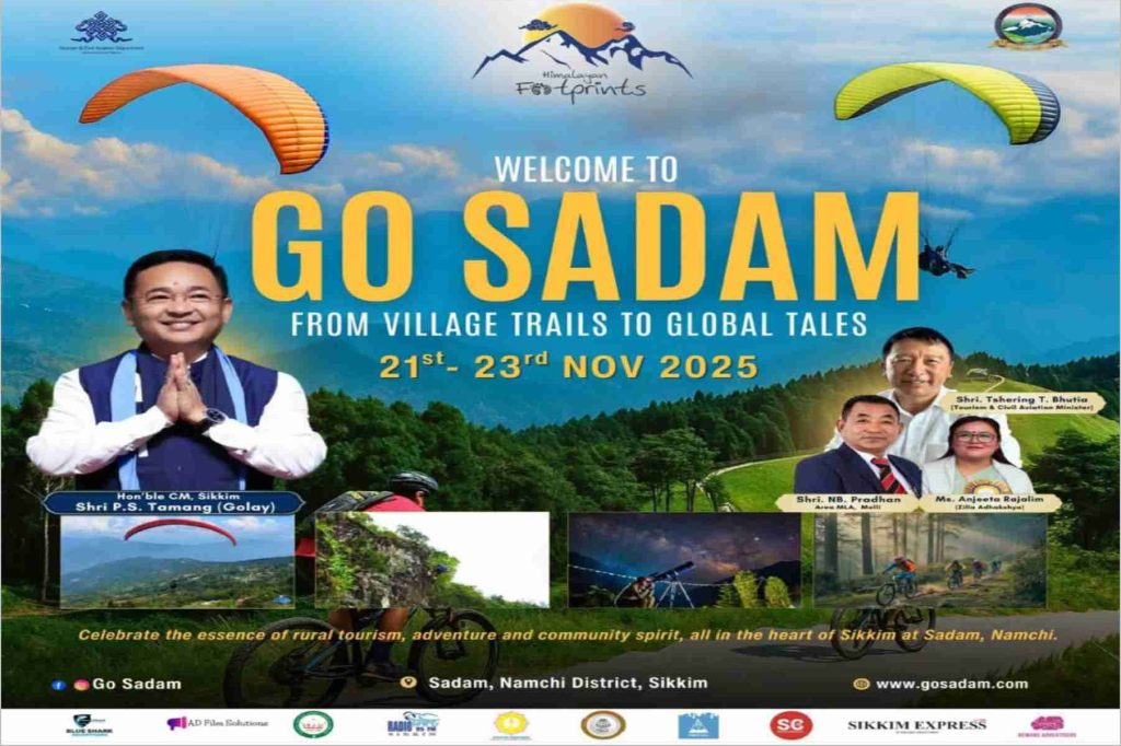 Go SADAM heavenadm November 19, 2025 Press Releases Leave a comment 1,209 Views Share tweet Related Articles The Honourable Tourism Minister of Sikkim visited Sadam along with officials from the Namchi District Administration for the “Go Sadam” event, held from 21st to 23rd November. November 17, 2025 Ministry of Tourism, Government of India is organizing 13th International Travel Mart at Sikkim during 13-16 November 2025. November 17, 2025 13th International Tourism Mart Showcases the Tourism Potential of North East India in Gangtok, Sikkim November 17, 2025 Share tweet